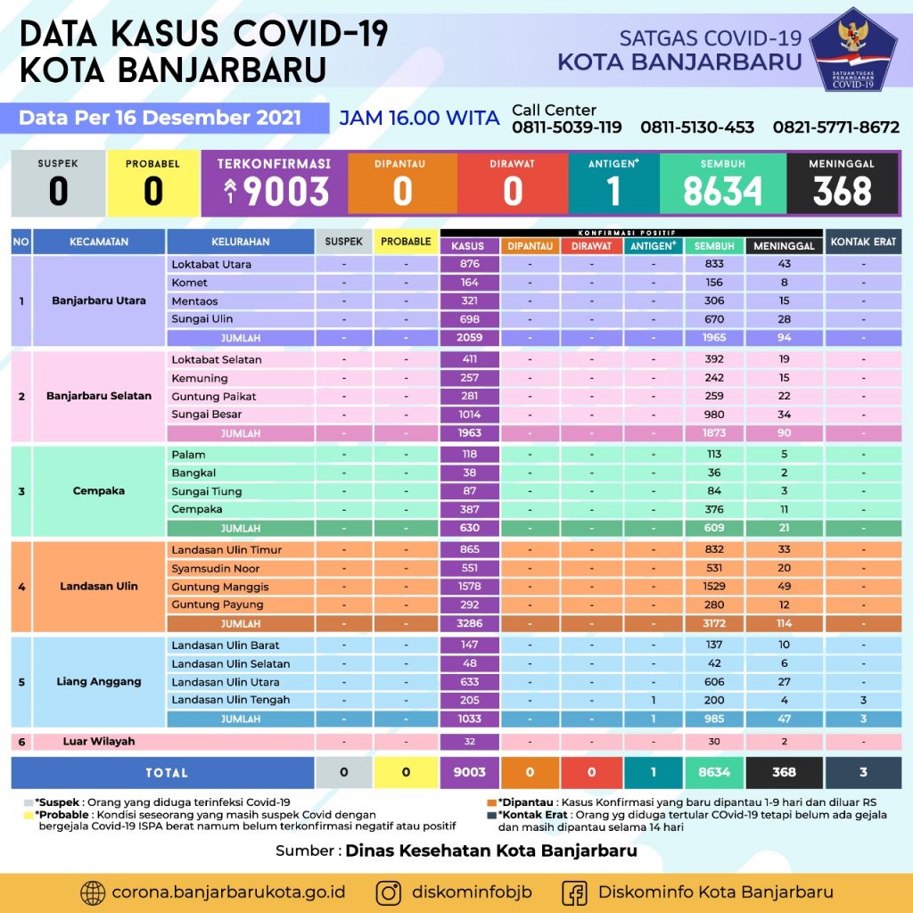 Data Sebaran COVID-19 Kota Banjarbaru Kamis, 16 Desember 2021