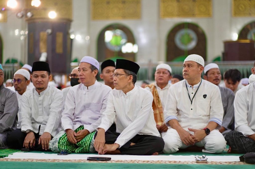 Rangkaian acara dimulai dengan salat Magrib berjamaah, dilanjutkan salat hajat, pembacaan ayat-ayat suci Al-Qur’an, hingga salat Isya berjamaah yang diimami oleh Syekh Asal Al-Banjari. Lantunan ayat suci yang menggema di dalam masjid menghadirkan suasana khidmat sekaligus menjadi refleksi spiritual bagi seluruh jamaah yang hadir.