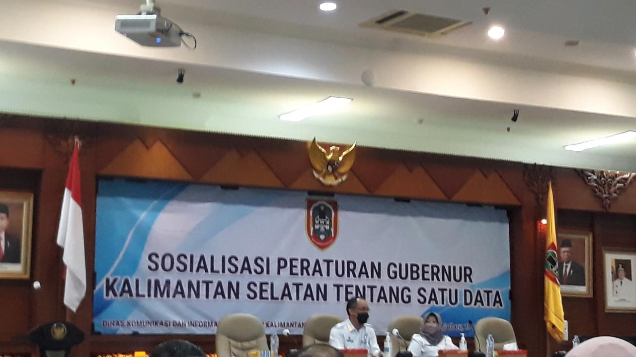 Banjabaru, 19 Januari 2022. Diskominfo prov kalsel menggelar Sosialisasi Pergub Kalsel No.078 Tahun 2021 tentang satu data di Aula Iberani Sulaiman Setda Prov Kalsel. Sosialisasi ini dihadiri langsung oleh Kabid Statistik & Persandian Diskominfo Kota Banjarbaru Drs.Krisman.
